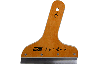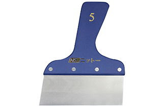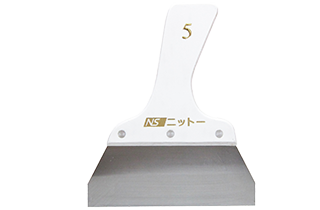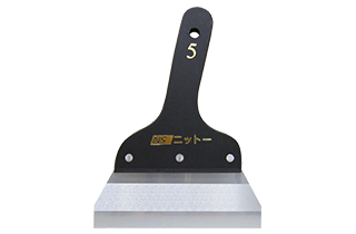 | 【備考】 | ・パテ塗付と同時に塗付端部(耳)を削ぎ落すことができる。 ・表面(ブレード特殊研磨)と裏面(無研磨)の両方を使用できるため、下地の状況に合わせて切り替えることができる。 ・オーソドックスな木製グリップを採用。 ・従来品より刃を5mm長くし、丁度良いしなり具合を実現。 |